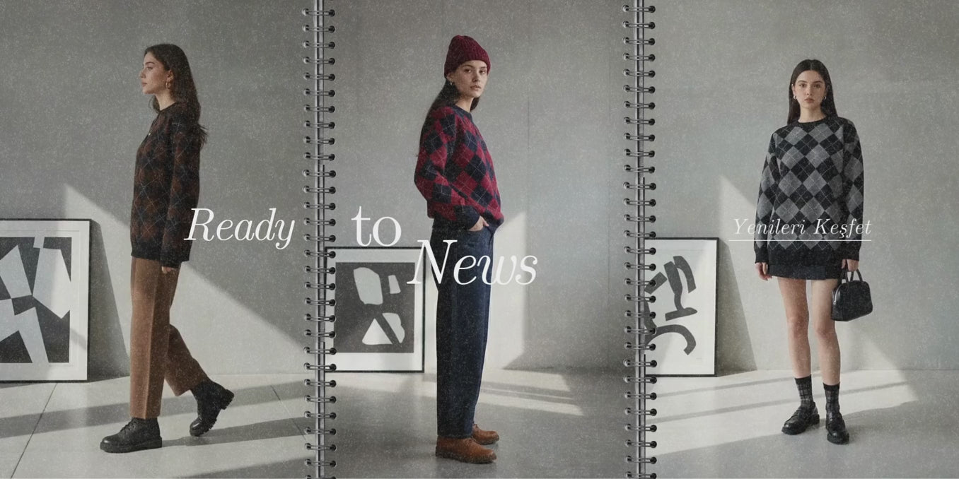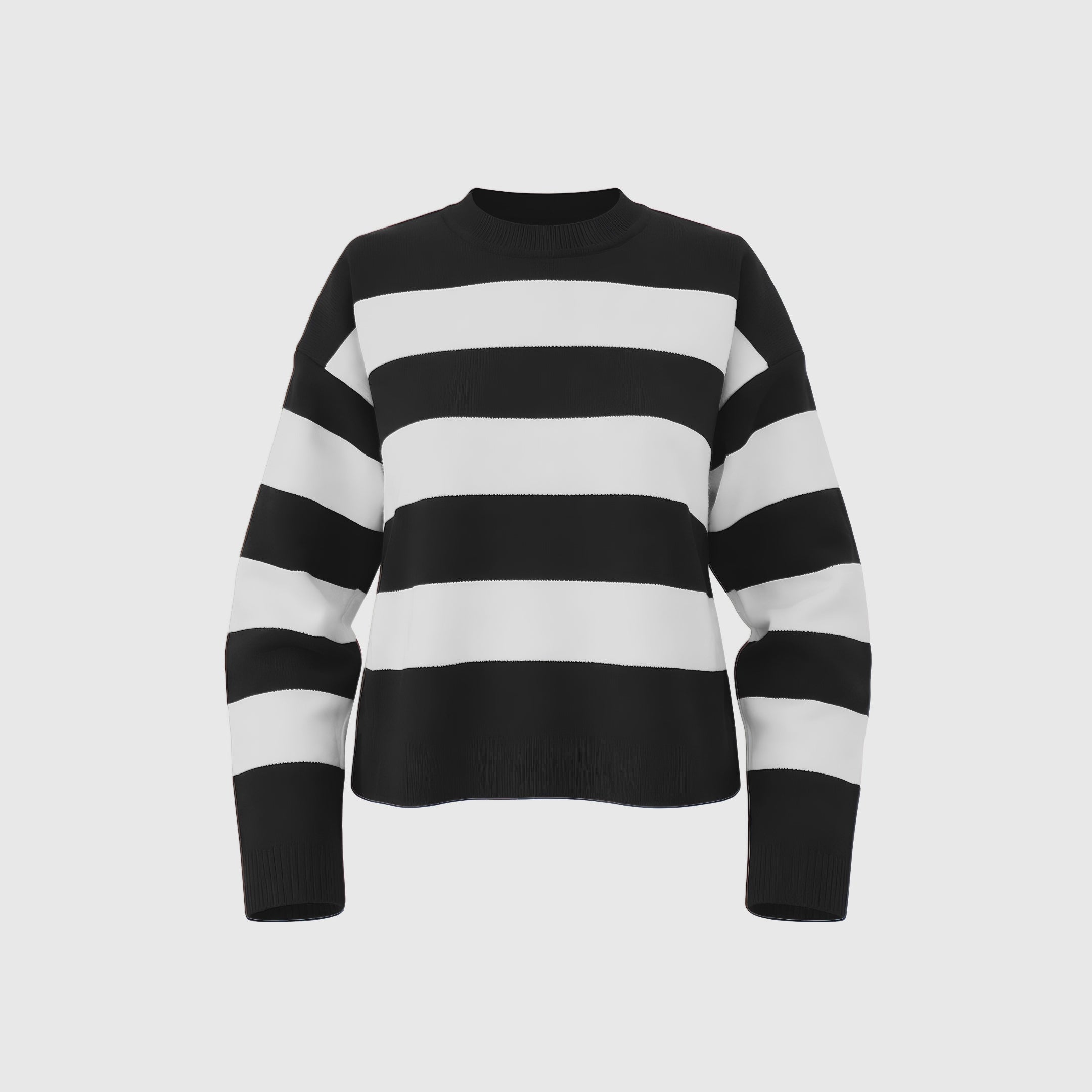 Bisiklet Yaka Oxford Baklava Desen Oversize Triko